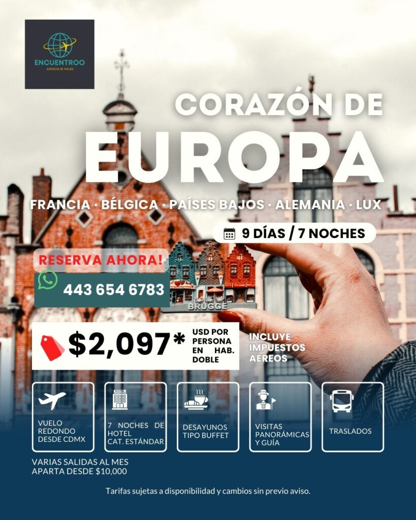 Para quienes desean conocer Europa sin tomar largas vacaciones o sin comprometer demasiado presupuesto, existe un tour que encaja perfectamente: Corazón de Europa, un circuito de 9 días y 7 noches que recorre cinco países increíbles en muy poco tiempo. Su equilibrio entre duración, precio, destinos y disponibilidad lo convierte en una de las opciones más flexibles y prácticas para viajar en 2026.