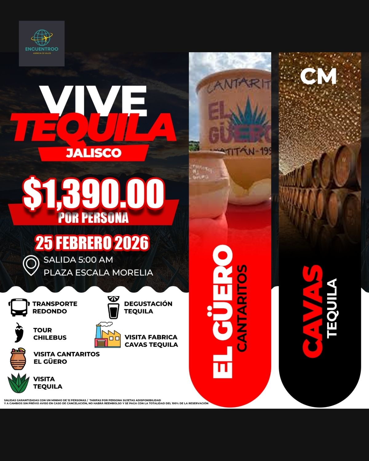 🌴 Morelia – Vallarta Transportes en fechas específicas para estancias de 4 días/3 noches. Viaje redondo $1,700 por adulto y $1,550 (4-12 años).