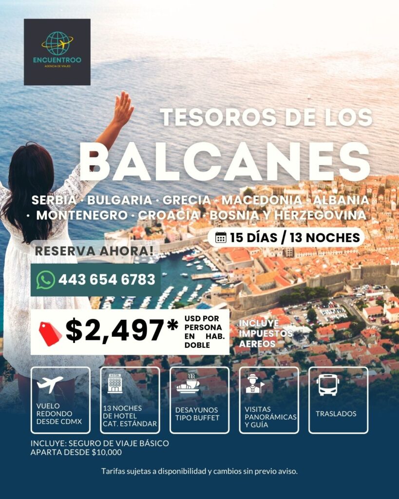Sofía, Monasterio de Rila, Tesalónica, Skopje, Ohrid, Tirana, Podgorica, Kotor, Dubrovnik, Medjugorje, Mostar, Sarajevo, Belgrado